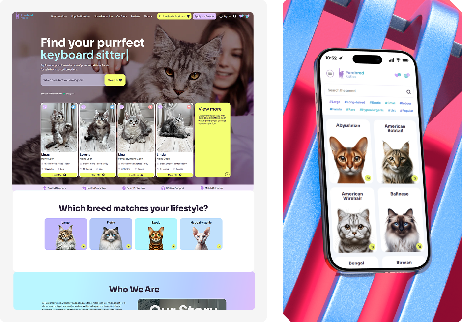 Purebred Kitties is a startup to connect families with healthy, sociable, and ethically bred purebred kittens. With a strong focus on ethical breeding, transparency, and feline well-being, the brand aims to make the adoption process as smooth, joyful, and meaningful.